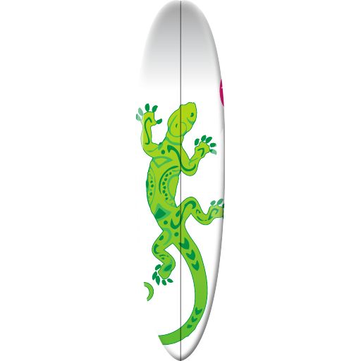 Une planche de surf "Egg" originale. Le motif "Gekko" est plaqué à même le produit, pour une tenue optimale.