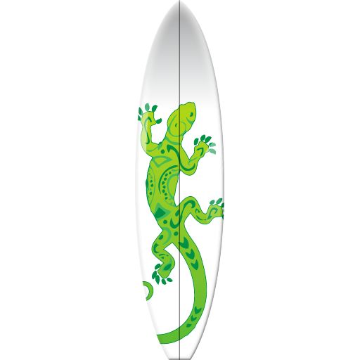 Une planche de surf "Fun" originale. Le motif "Gekko" est plaqué à même le produit, pour une tenue optimale.