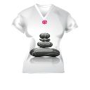 Un tshirt à col en V pour femme, qui arbore le motif Stone.