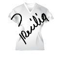 Un tshirt à col en V pour femme, qui arbore le motif Precilia N.