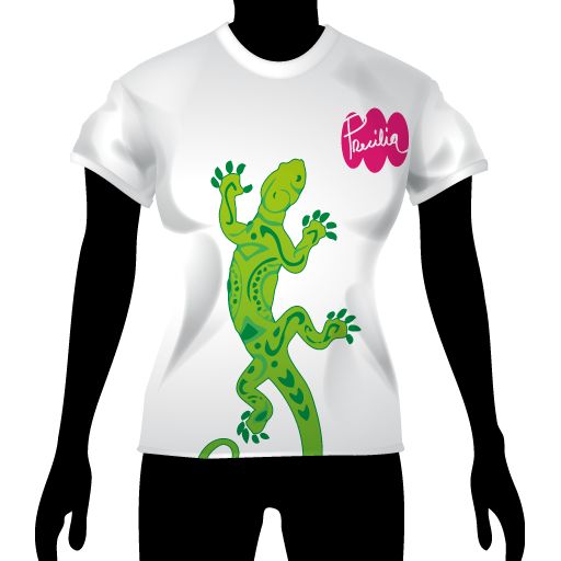 | | | | Un tshirt à col rond pour femme, qui arbore le motif Gekko.